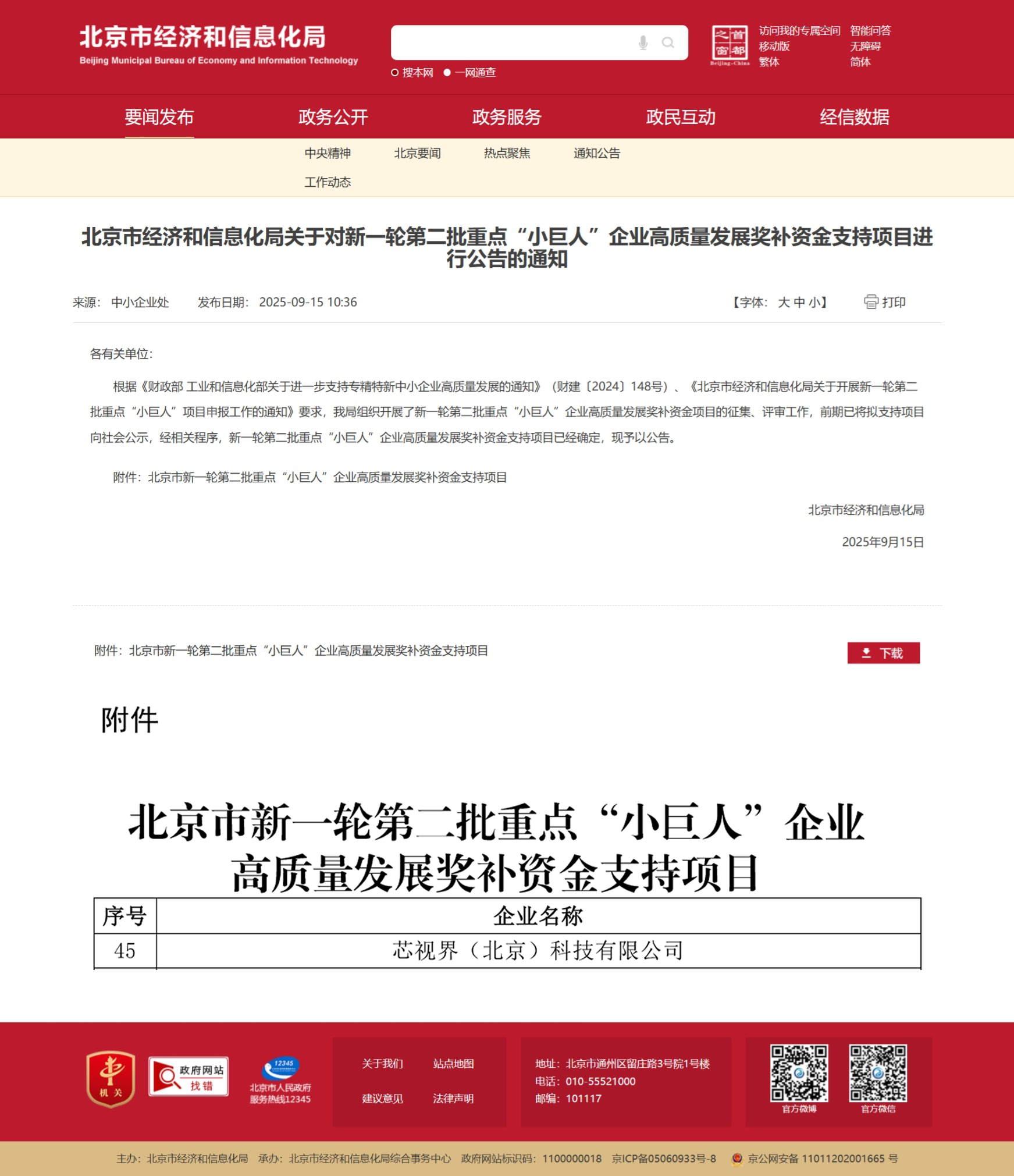 近日,國家工業(yè)和信息化部權(quán)威發(fā)布國家級(jí)專精特新重點(diǎn)“小巨人”企業(yè)名單,芯視界(北京)科技有限公司(以下簡(jiǎn)稱芯視界)成功入選。