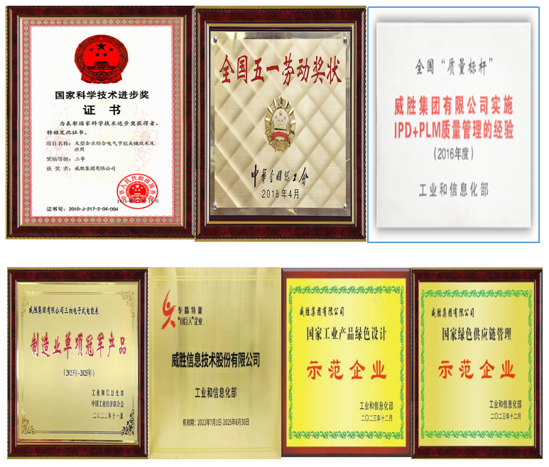 威勝榮獲國家級科技進(jìn)步二等獎 1 項(xiàng),中國專利優(yōu)秀獎 1 項(xiàng),其他省、市級科技獎多項(xiàng)。2016 年威勝榮獲國家工信部“2016 年智能制造試點(diǎn)示范項(xiàng)目”、全國“質(zhì)量標(biāo)桿企業(yè) ”稱號,2017 年榮獲第五屆湖南省省長質(zhì)量獎,2018 先后榮獲“全國五一勞動獎狀 ”與“ 中國企業(yè)文化建設(shè)先進(jìn)單位 ”。2019 年三相電子式電能表成功入選工信部第四批制造業(yè)單項(xiàng)冠軍產(chǎn)品,2021 年榮獲國家工信部頒發(fā)的“工業(yè)互聯(lián)網(wǎng)試點(diǎn)示范項(xiàng)目”和“智能光伏試點(diǎn)示范企業(yè)” ,2022 年榮獲國家級專精特新“小巨人”企業(yè)和中國電工技術(shù)學(xué)會科學(xué)技術(shù)獎科技進(jìn)步一等獎,2023 年榮獲“ 國家知識產(chǎn)權(quán)優(yōu)勢企業(yè)、國家級工業(yè)產(chǎn)品綠色設(shè)計(jì)示范企業(yè)、國家級綠色供應(yīng)鏈管理企業(yè) ”稱號。