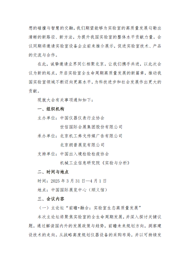 我們誠摯邀請您參加第六屆中國實驗室發(fā)展大會,讓我們攜手共進,以此次會議為新的起點,開啟實驗室全生命周期高質量發(fā)展的新篇章,推動我國實驗室領域不斷邁向更高水平,為科技進步和社會發(fā)展作出更大的貢獻。