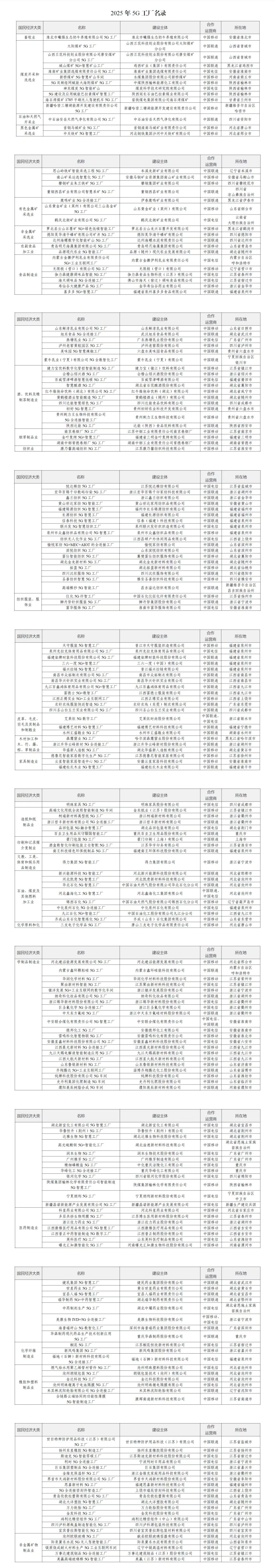 關(guān)于印發(fā)《2025年5G工廠名錄》的通知