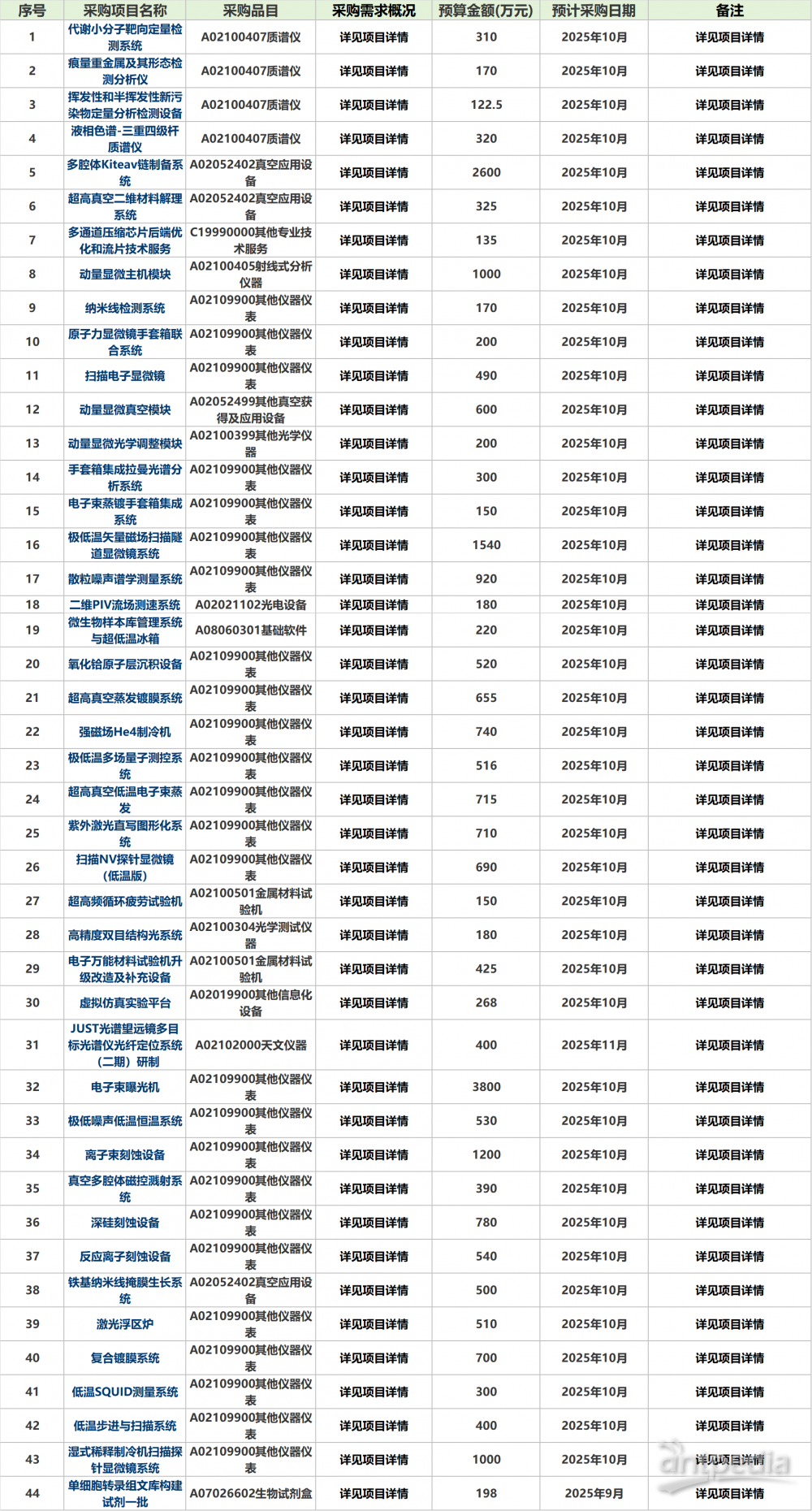 中國政府采購網(wǎng)消息,近日,上海交通大學(xué)連續(xù)發(fā)布2025年度9月、10月及11月政府采購意向。內(nèi)容顯示,該批次采購意向采購標(biāo)的涵蓋多類科研儀器設(shè)備及專業(yè)技術(shù)服務(wù),包括代謝小分子靶向定量檢測系統(tǒng)、液相色譜 -三重四級桿質(zhì)譜儀、極低溫矢量磁場掃描隧道顯微鏡系統(tǒng)等。公開信息顯示,該批次采購預(yù)算總金額達到2.67億元,采購日期方面,除“單細胞轉(zhuǎn)錄組文庫構(gòu)建試劑一批”及“JUST光譜望遠鏡多目標(biāo)光譜儀光纖定位系統(tǒng)(二期)研制”將于9月和11月采購之外,其余項目均將于10月份進行采購。具體信息已項目相關(guān)采購公告和采購文件為準。